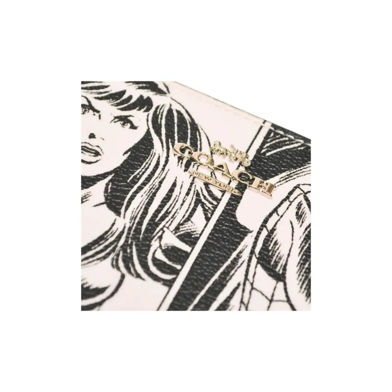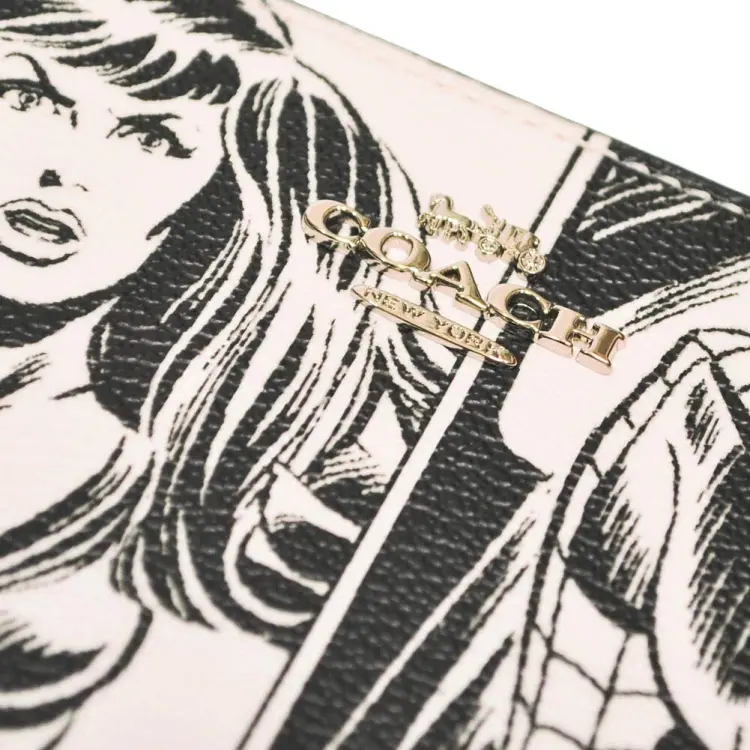 COACH MARVEL Коллаборация Accordion Zip Покрытый холст Кошелек Средний Женская Белая