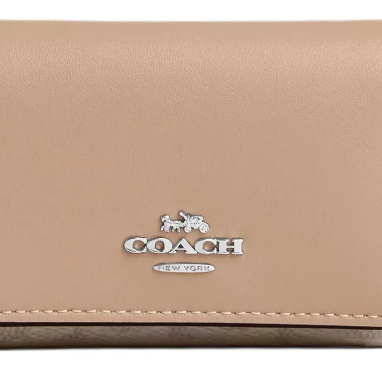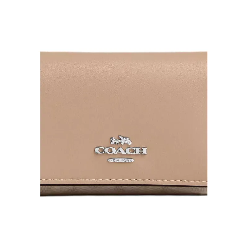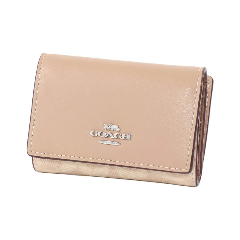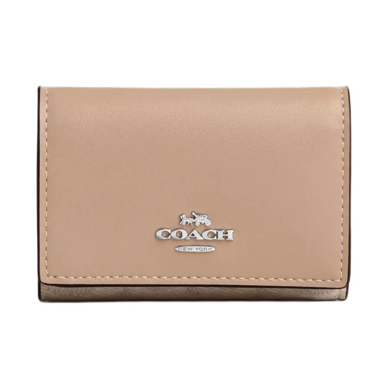 COACH Micro Coated Canvas Leather Wallet Mini Women's Sand Taupe