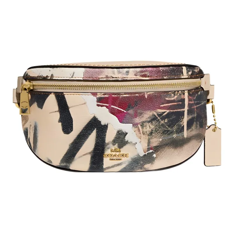 COACH Мята+SERF Коллаборация Bethany Полированная кожа с эффектом галечного покрытия Бананка Маленькая Женская Слоновая кость