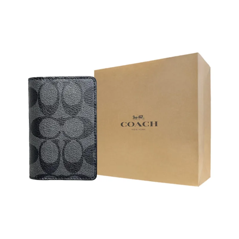 COACH Покрытый холст Сумка для документов Держатель для карт кошелек Мужской Уголь
