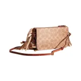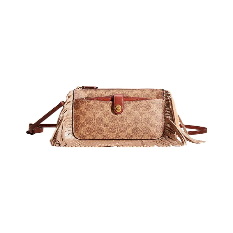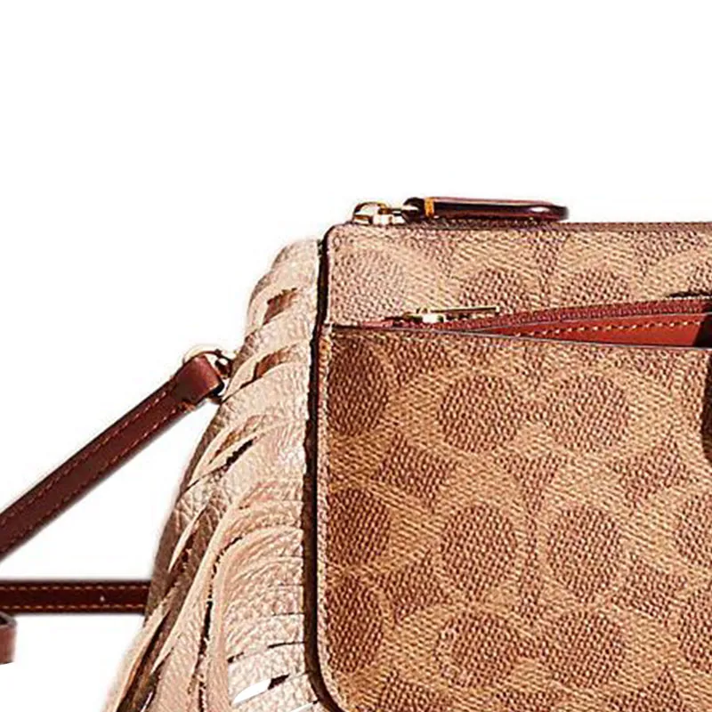 COACH NOA POP Up Покрытый холст с утонченной телячьей кожей курьерская сумка сумка на плечо маленькая женская коричневый
