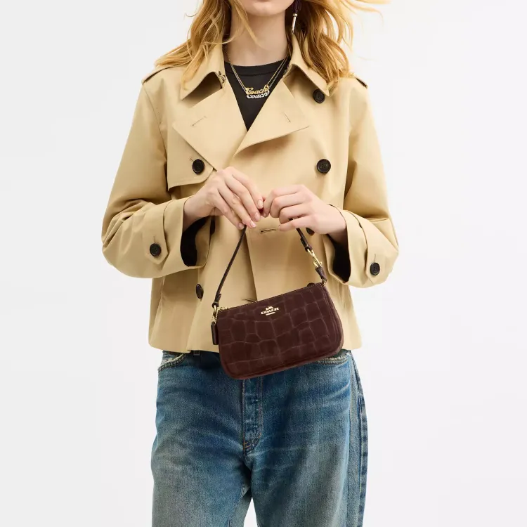 COACH Nolita Крокодил Тисненый Замша с Гладкая кожа Сумка на плечо Сумка Сумка через плечо Маленькая Женская Кленовый