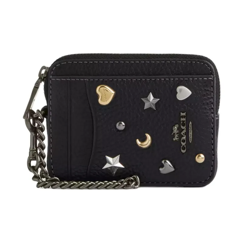 COACH Нубук Кожа Держатель для карт Мини Женский Черный