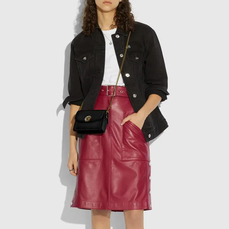 COACH Паркер Кожа Сумка с цепочкой Клатч Сумка через плечо Мини Женская Черная