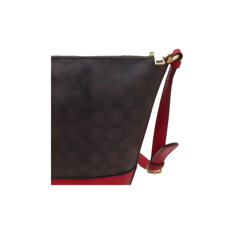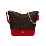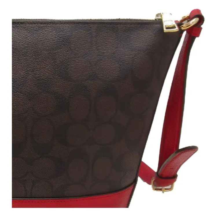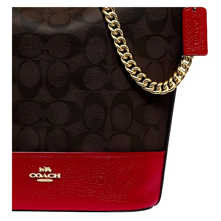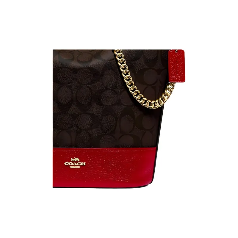 COACH Paxton Монограмма Холст и Кожаная Сумка через плечо Маленькая Женская Коричневая Красная