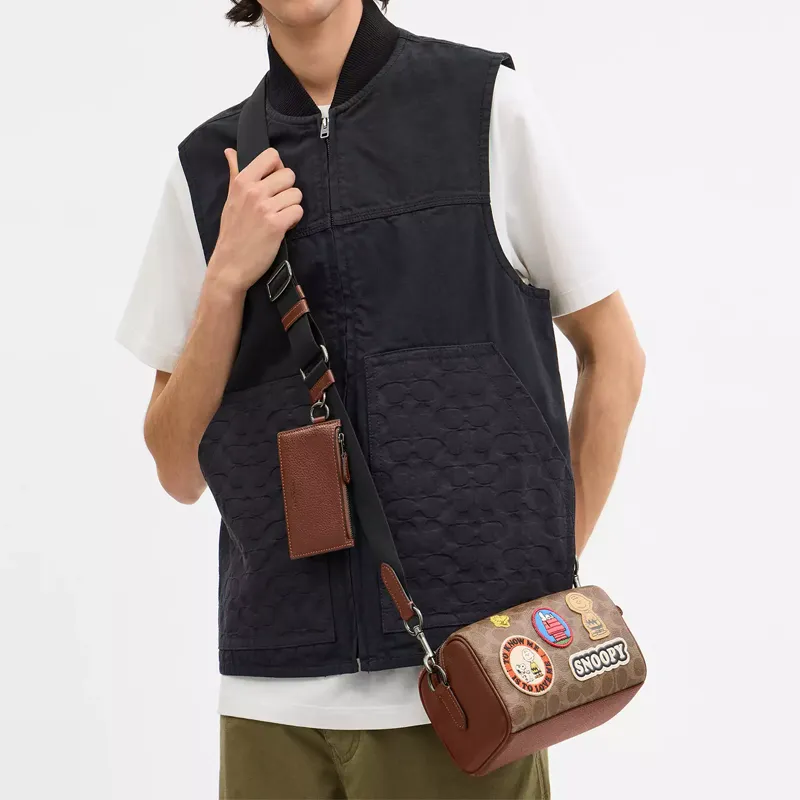 COACH PEANUTS Collaboration Axel Покрытый холст Сумка через плечо Сумка на плечо Мини Женская Коричневая