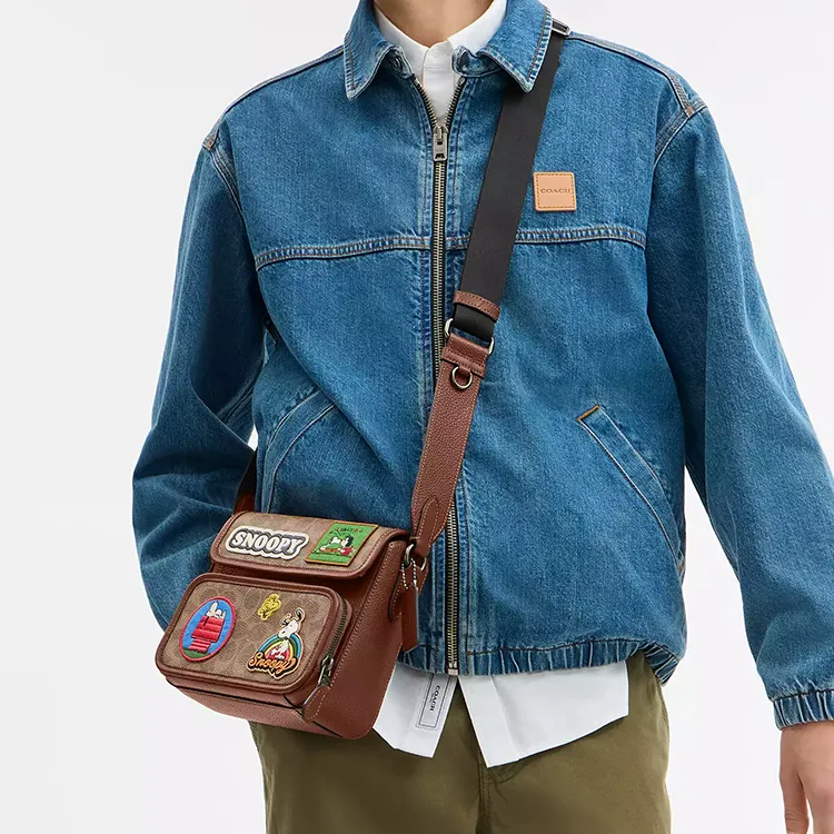 COACH PEANUTS Collaboration Sullivan Покрытый холст Сумка через плечо Сумка на плечо Маленькая Мужская Коричневая