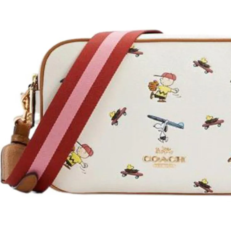 COACH Peanuts Snoopy Коллаборация Jes Кожа Сумка через плечо Сумка на плечо Средняя Женская с принтом Белый