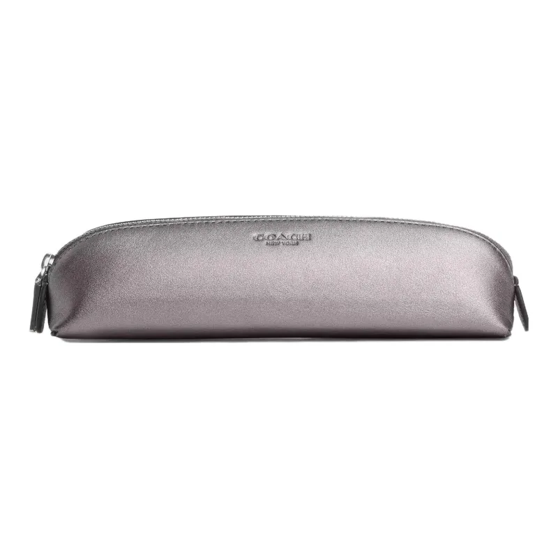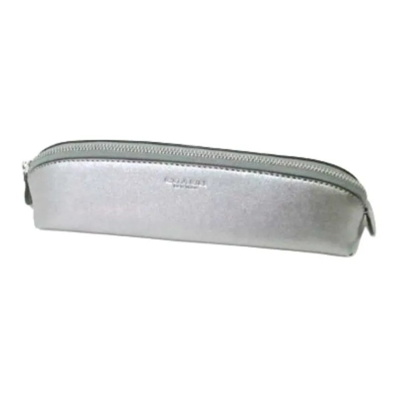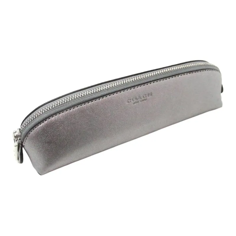 COACH Пенал Металл Гладкая кожа Пенал Мешок для хранения Трубы Унисекс Серебристо-серый