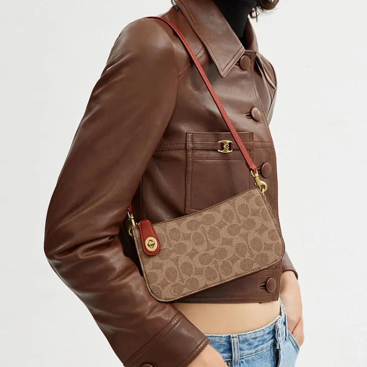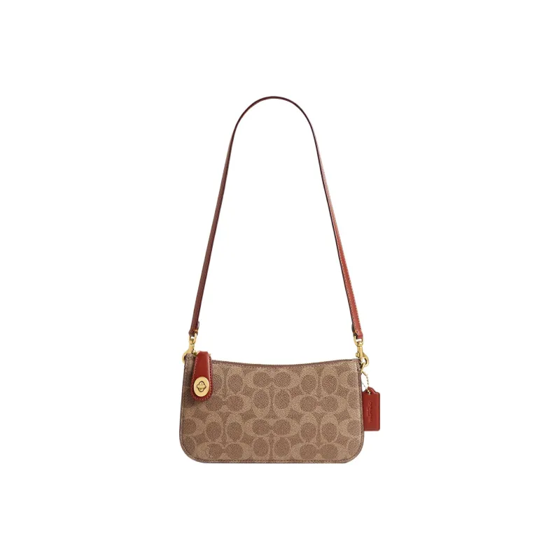 COACH Penn Покрытый холст с утонченной телячьей кожей сумка через плечо женская коричневый
