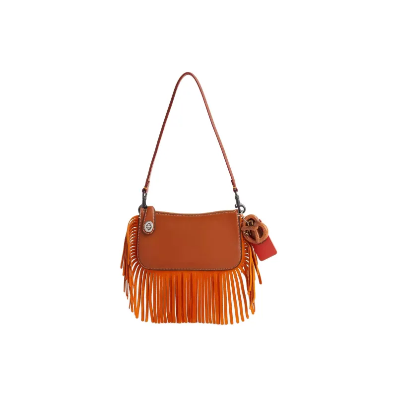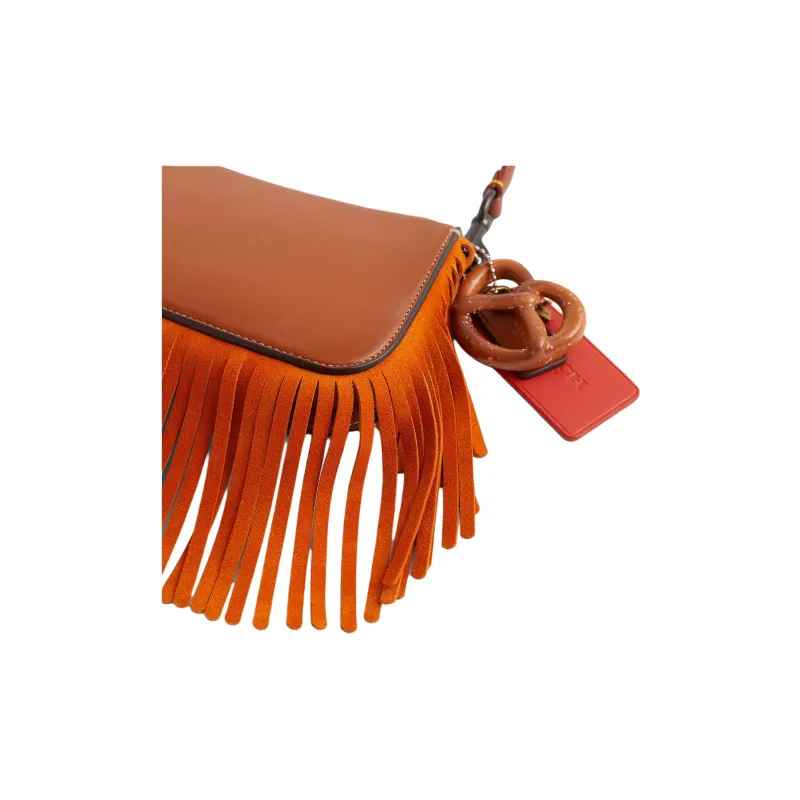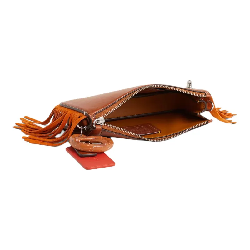 COACH Penn Дубленая кожа Перчатка Сумка через плечо Маленькая Женская серебряная и полированная Амбра