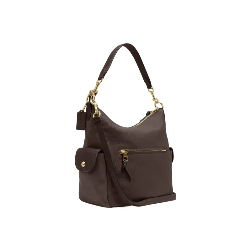 COACH Pennie Утонченный GRAIN LEATHER с Замша Портативный Сумка через плечо Сумка на плечо Большая Женская Коричневая