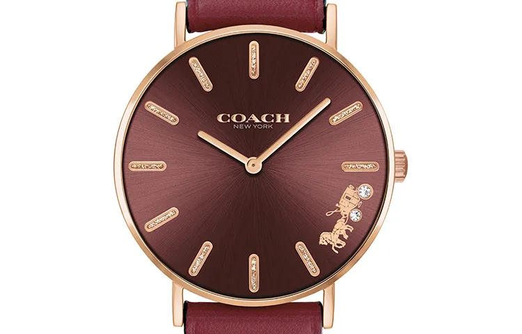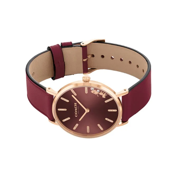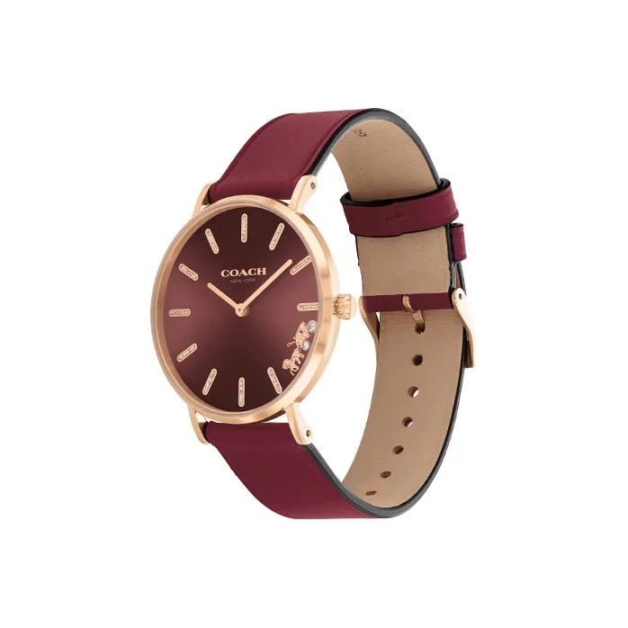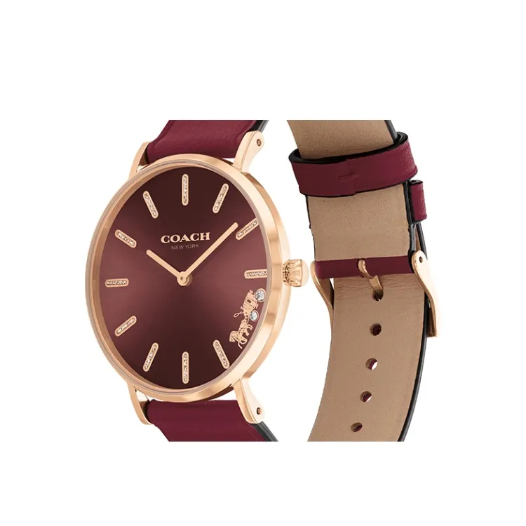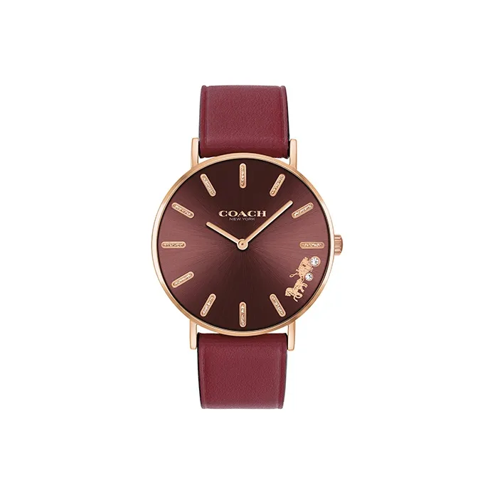 COACH Perry Collection Наручные часы Кварцевый механизм Кожаный ремешок 36 мм Красный циферблат Женские часы