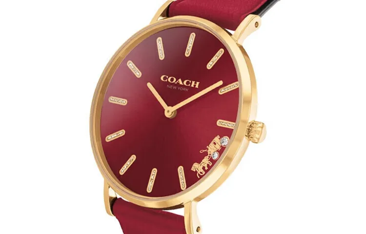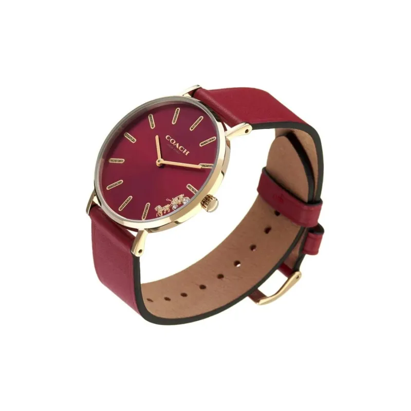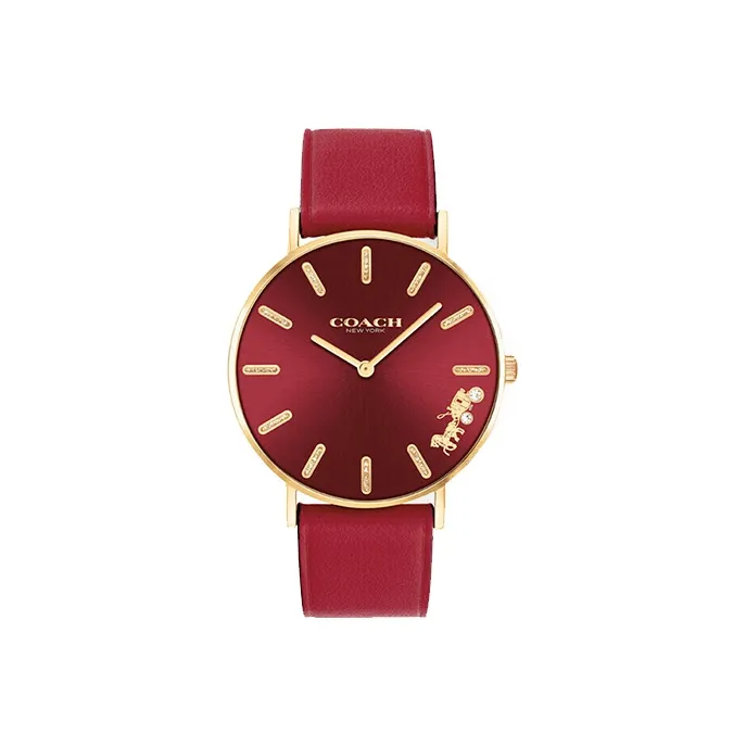 COACH PERRY PELLY Collection Наручные часы Кварцевый механизм Кожаный ремешок 36 мм Красный циферблат Женские часы 14503852