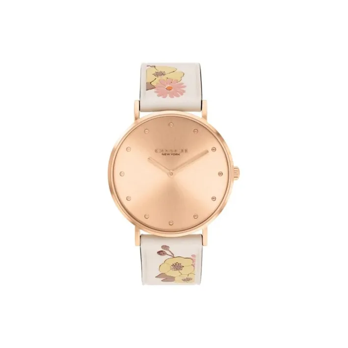 COACH Perry Наручные часы Кварцевый механизм Кожаный ремешок 36 мм Розовое золото Циферблат Женские часы