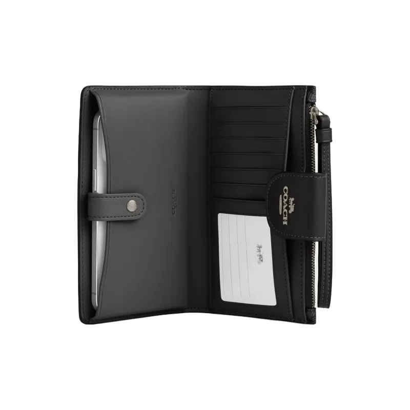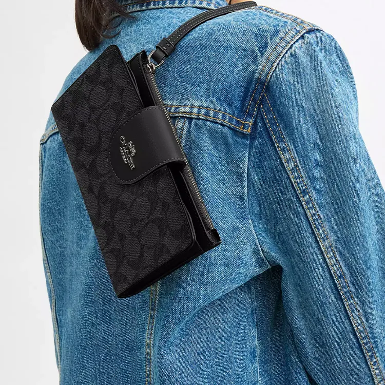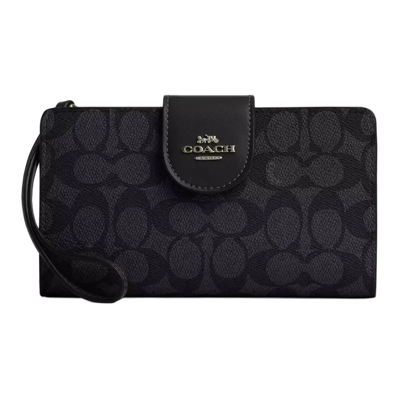 COACH Phone Покрытый холст Кошелек Маленький Женский Бронза Угольный Серый Черный