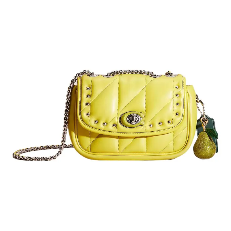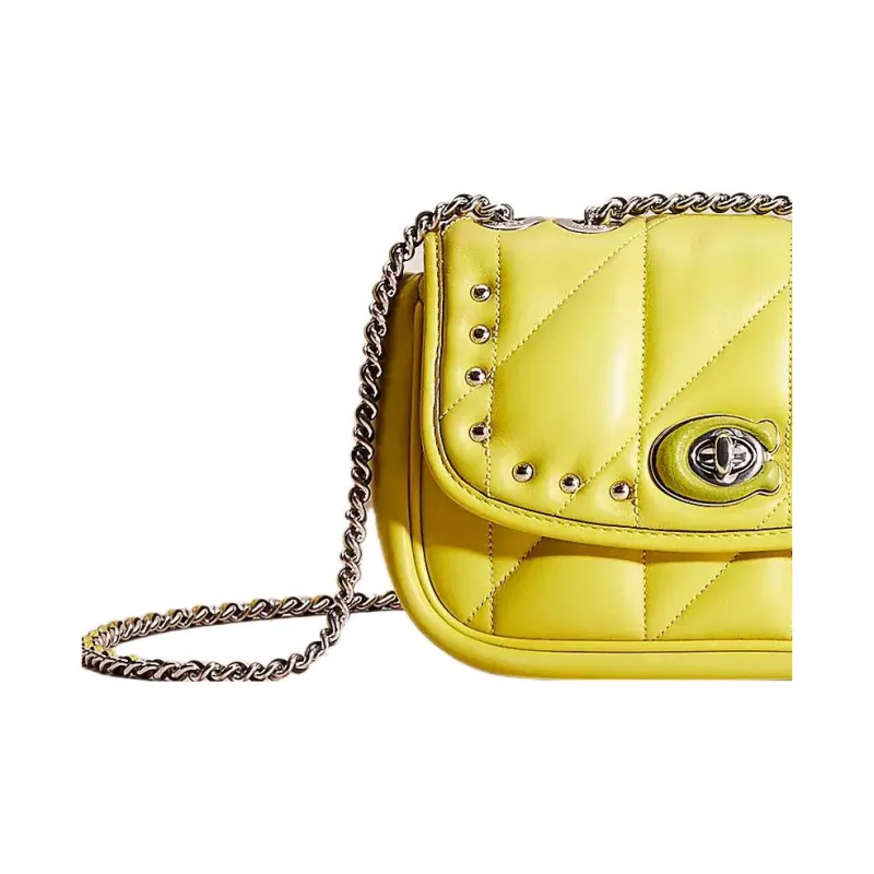 COACH Pillow Кожа Наппа Сумка-подушка Сумка через плечо Сумка на плечо Женское Серебристое и Оранжевое Желтое