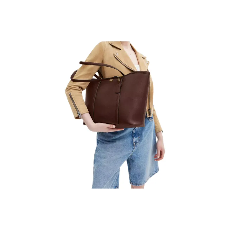 COACH Полированная кожа галька тоут сумка сумка для покупок сумка на одно плечо большая женская латунь And кленовый