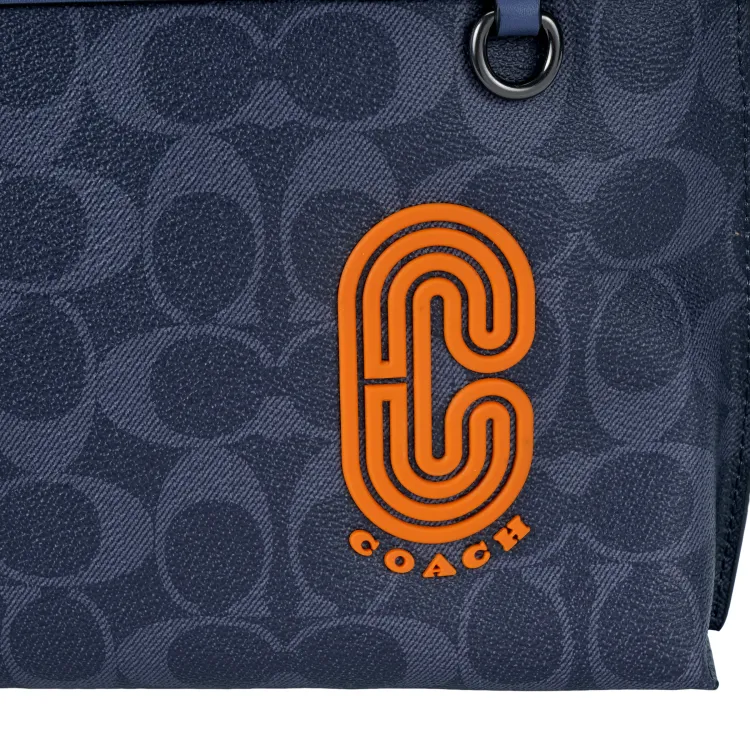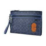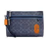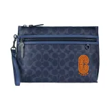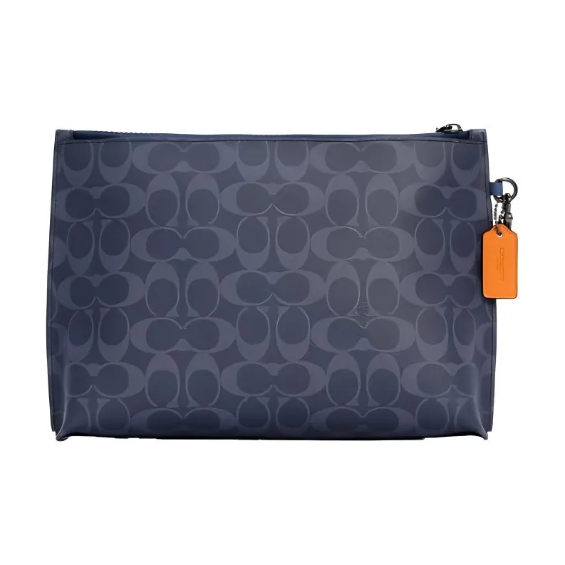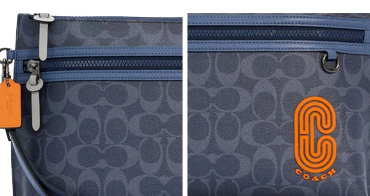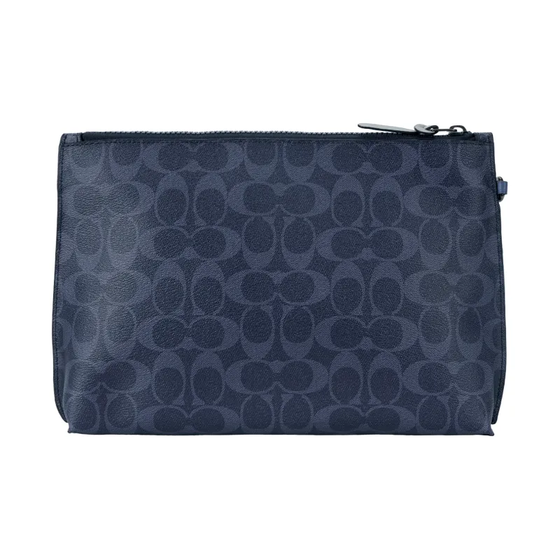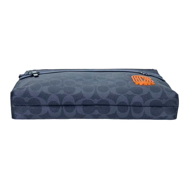 COACH Pouch Покрытый холст с телячьей кожей ноутбук сумка портфель клатч большой мужской полночный синий