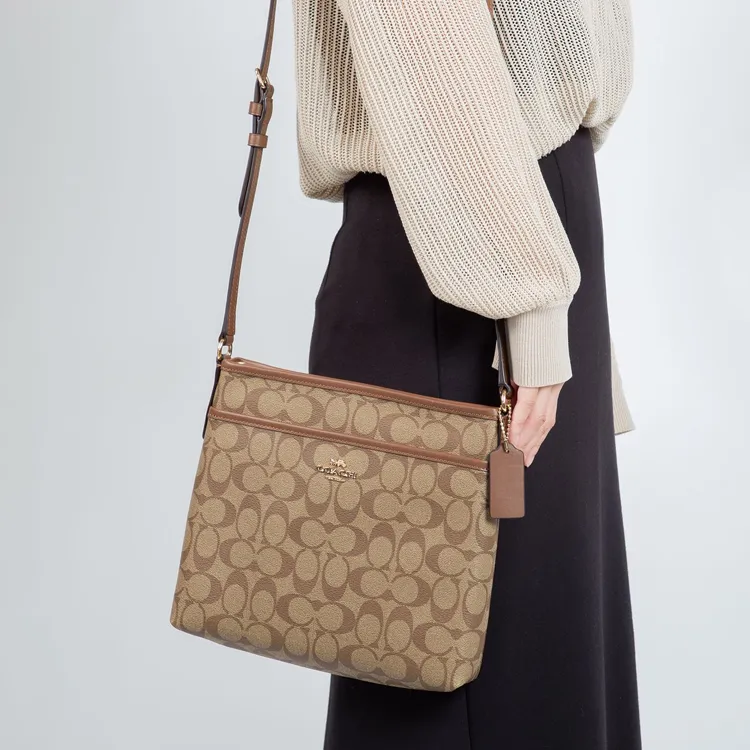 COACH ПВХ Сумка через плечо Большая Женская Коричневая