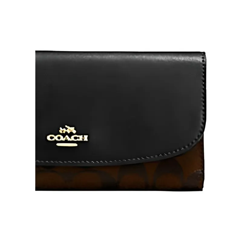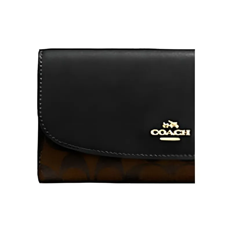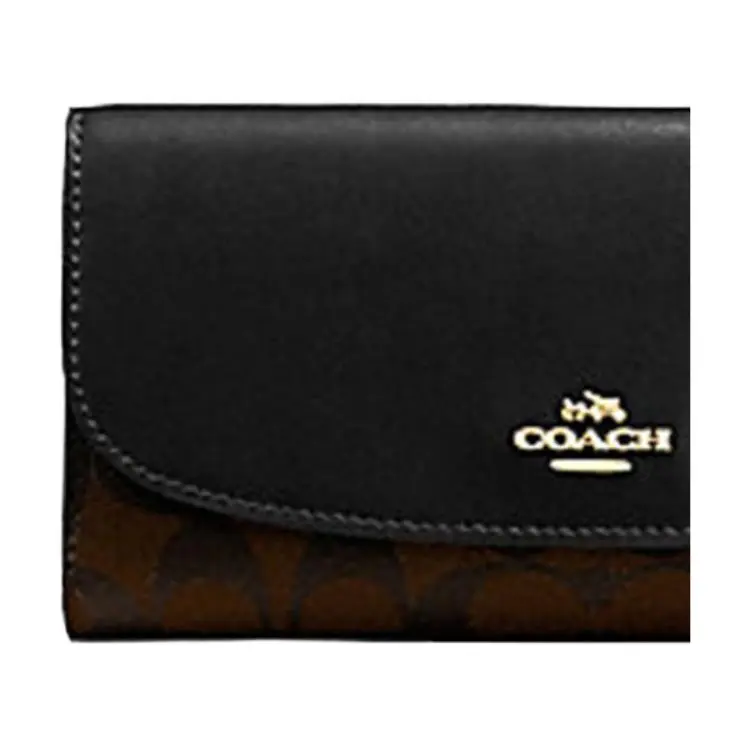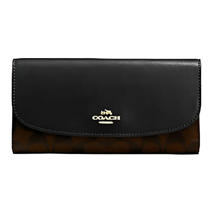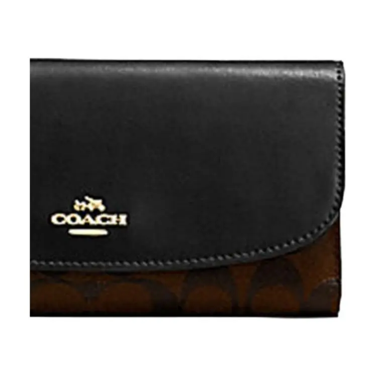 COACH ПВХ с кожей длинный чехол для купюр кошелек с держателем для чеков женский коричневый и черный