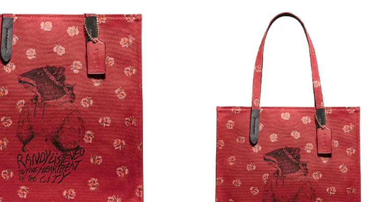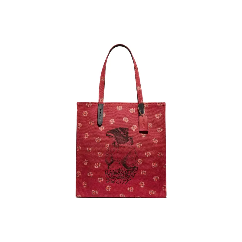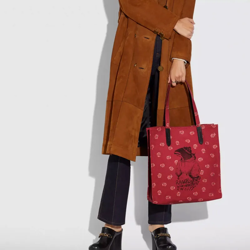 COACH Randy The Крыса Коллаборация Recycled Tote Холст с кожей Тоут Сумка Сумка для покупок Сумка на одно плечо Большая
