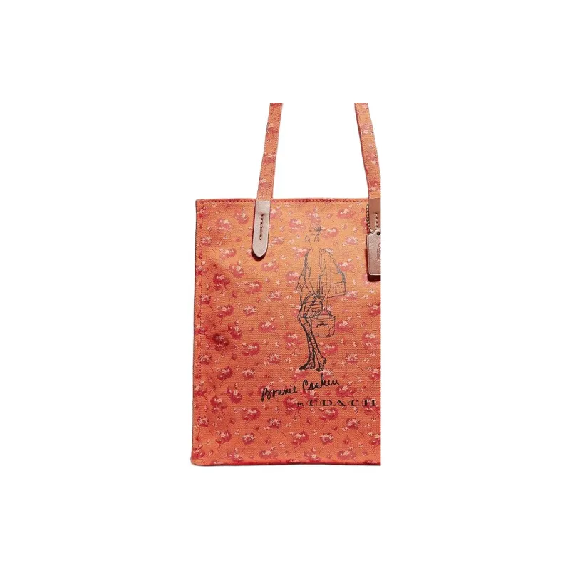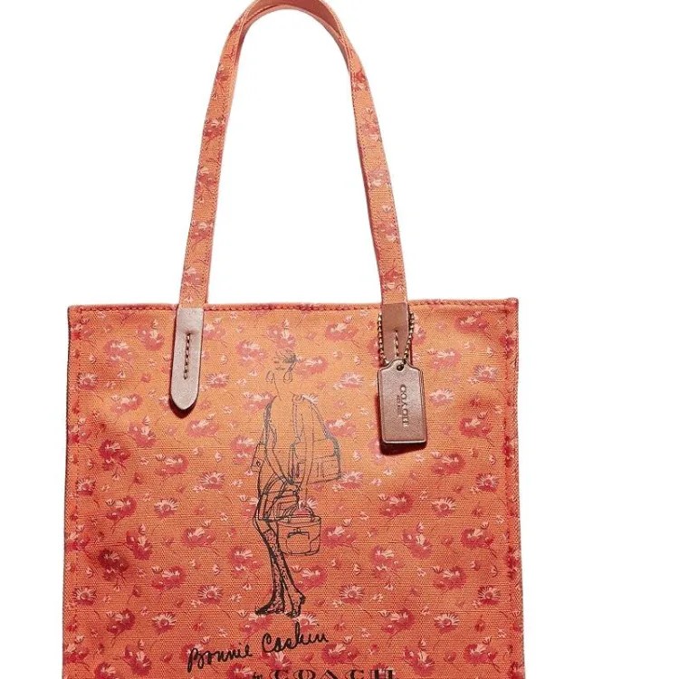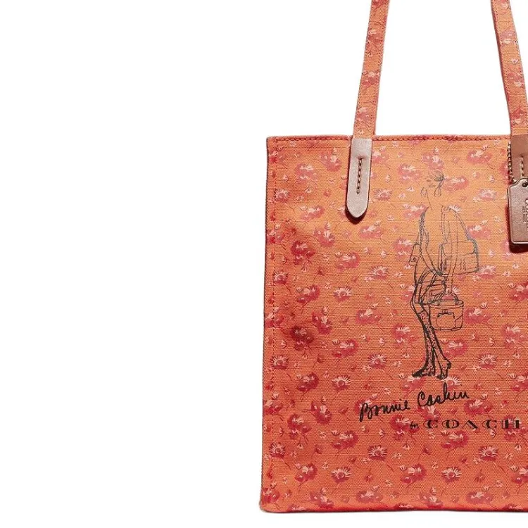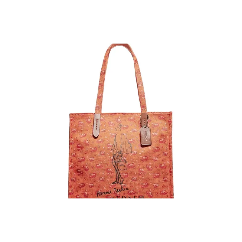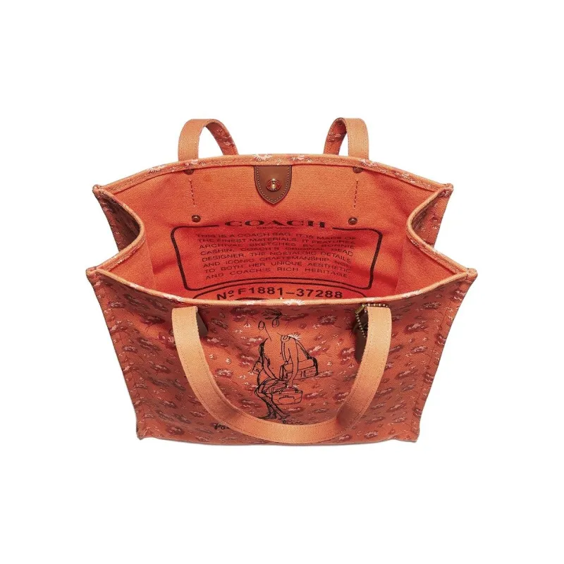 COACH Recycled Tote Холст с печатью Тоут Сумка Сумка для покупок Сумка на плечо Большая Женская Апельсин