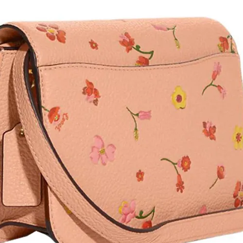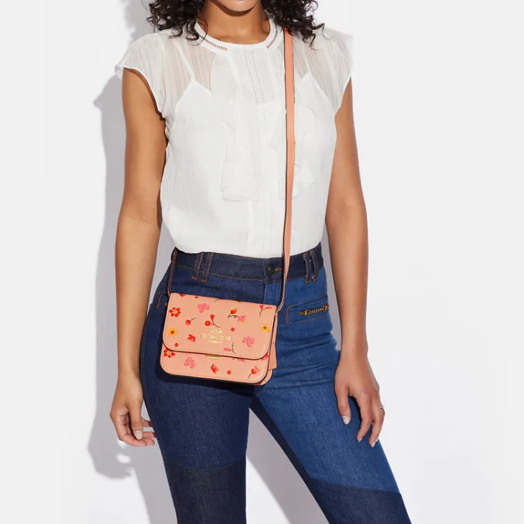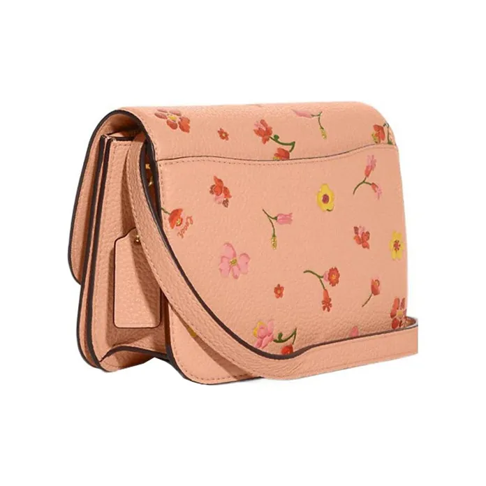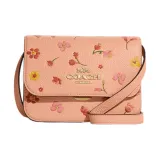 COACH Утонченный Pebble Кожа Маленькая Квадратная Сумка Сумка через плечо Маленькая Женская Оранжевая Розовая