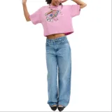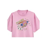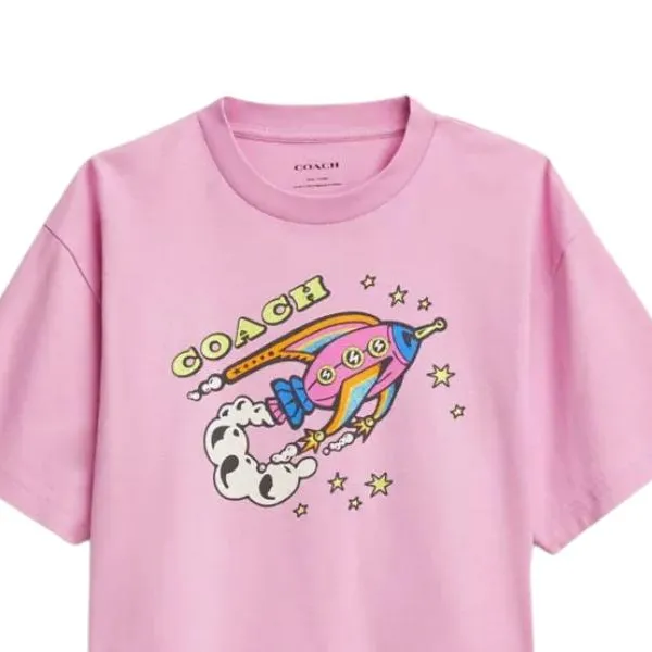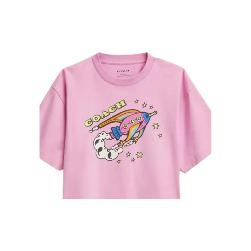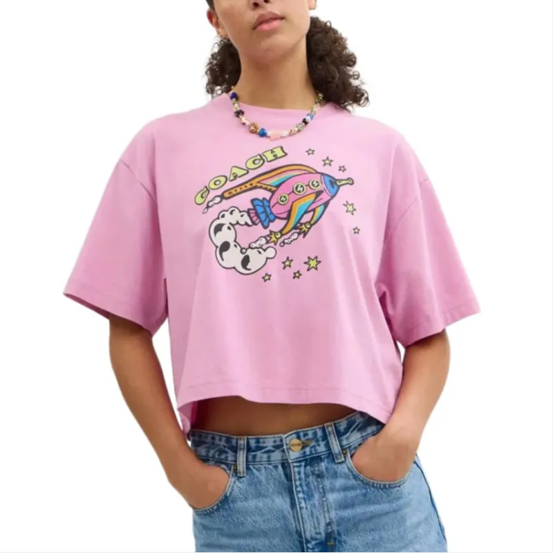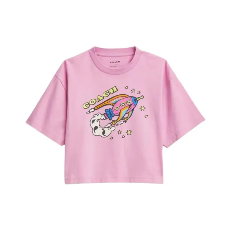 COACH Ракета Принт Укороченный Короткий С короткими рукавами с оборванными плечами Рубашка Женская Розовая