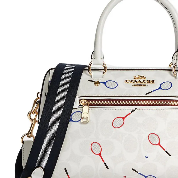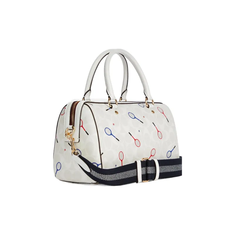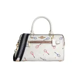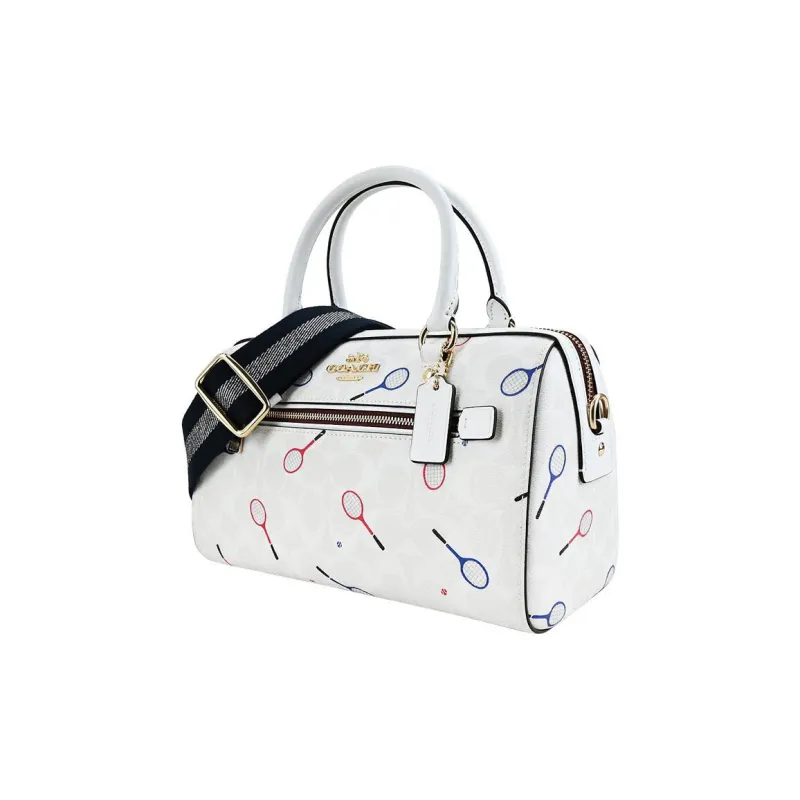 COACH Rowan Холст и Кожа Бостон Сумка Сумка Сумка через плечо Сумка через плечо Большая Женская Мел Белый