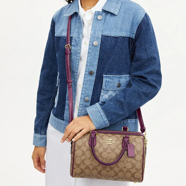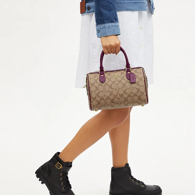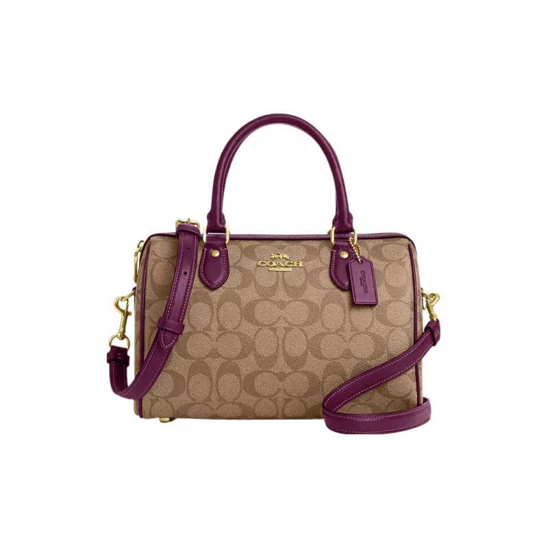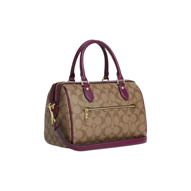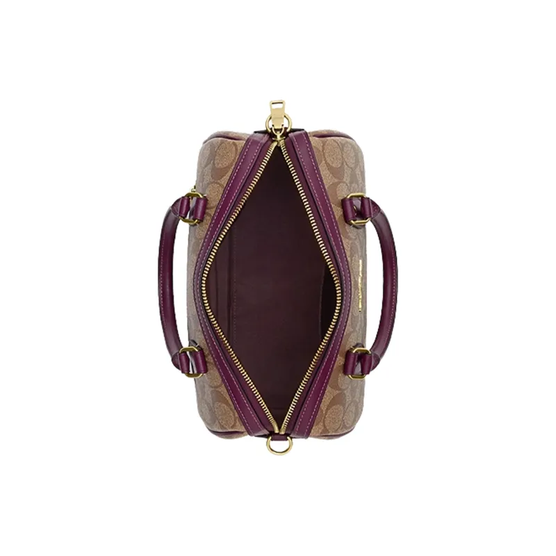 COACH Rowan Холст с кожей Бостонская сумка Сумка Сумка через плечо Сумка через плечо Средний Женские Хаки Ягода