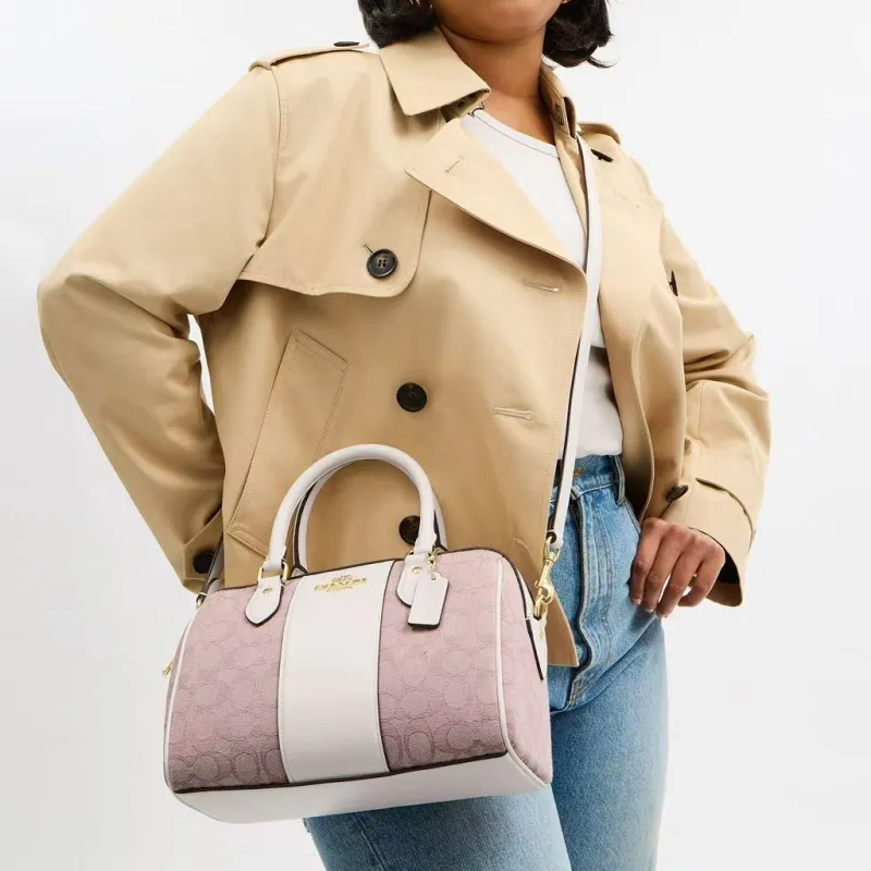 COACH Rowan Ткань с коровьей кожей Сумка через плечо Сумка среднего размера Женская Белая и Фиолетовая