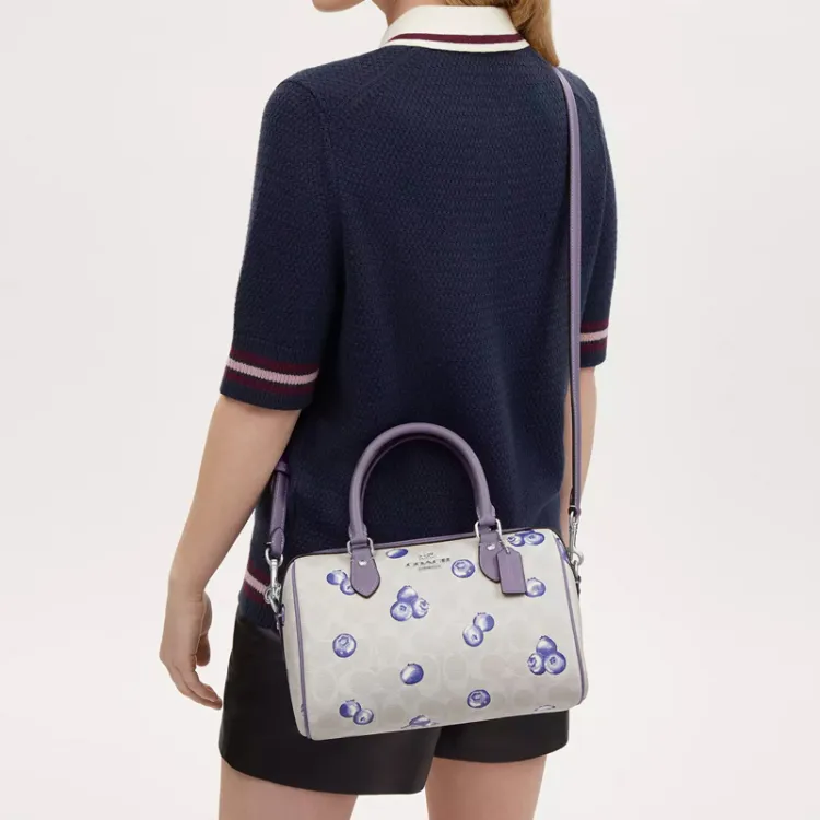 COACH Rowan Фирменная Покрытая Холст Сумка Сумка через плечо Сумка через плечо Средняя Женская Серебряный Мел Светло-фиолетовый