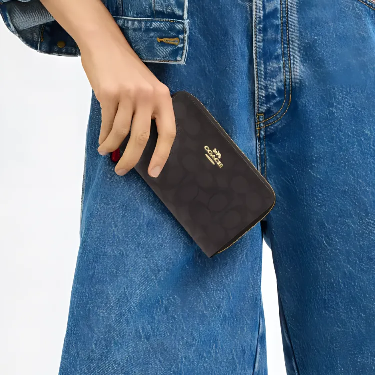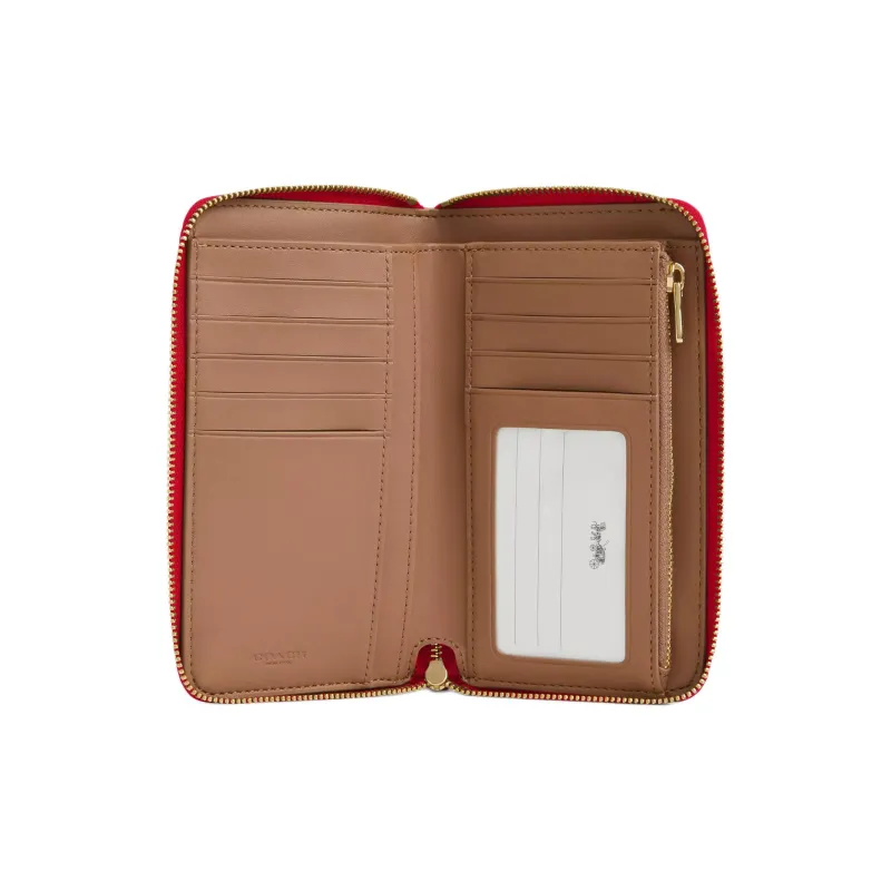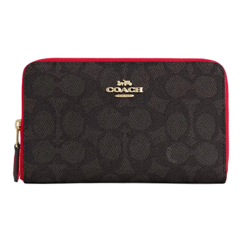 COACH SignatureCanvas Покрытый холст Кошелек Средний Женский Ореховый и Красный