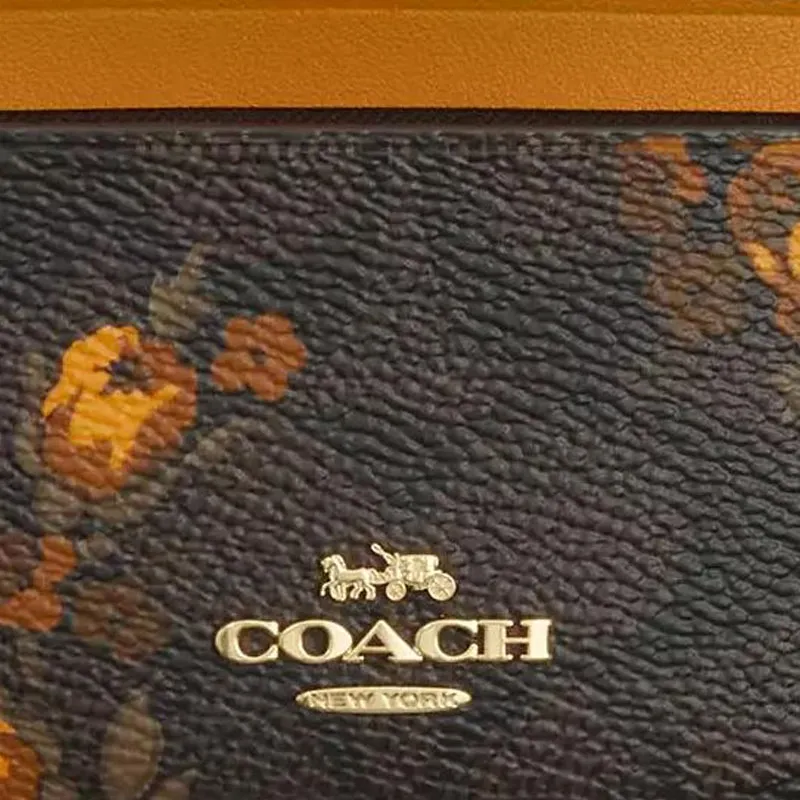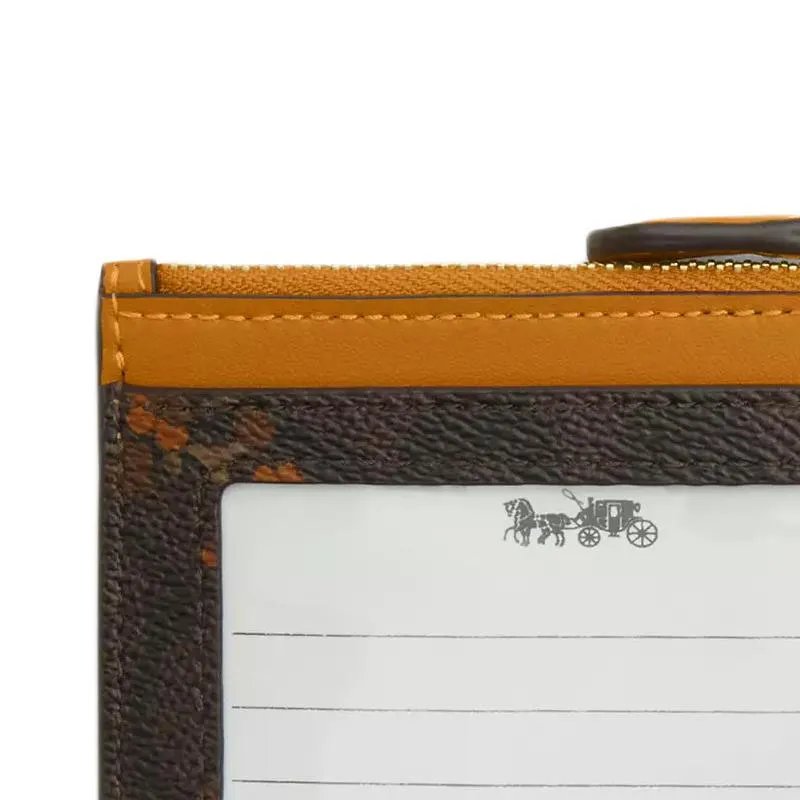 COACH Skinny Id Case Покрытый холст Картхолдер Мини Женские Ореховый