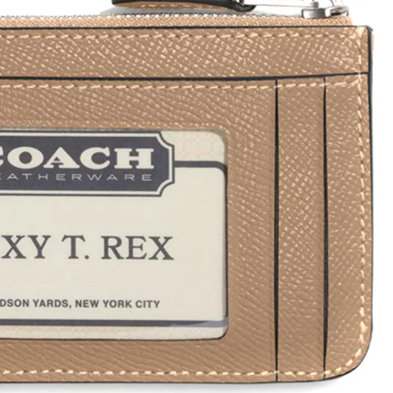 COACH Skinny Id Case Twill Leather Card Holder Mini Women's Brown