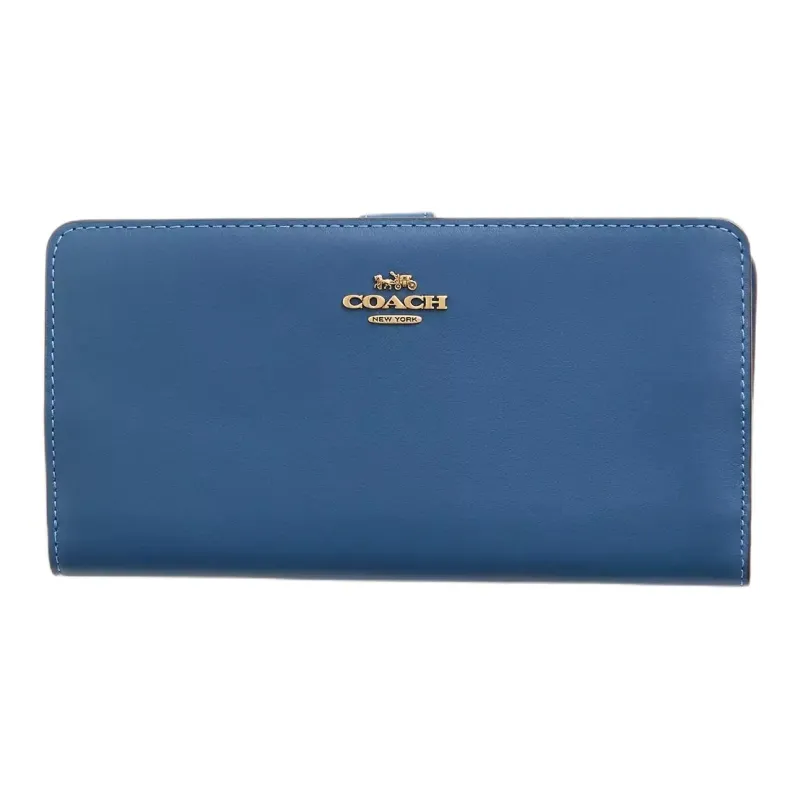COACH Skinny Wallet Кожа Кошелек Маленький Женский Темно-синий