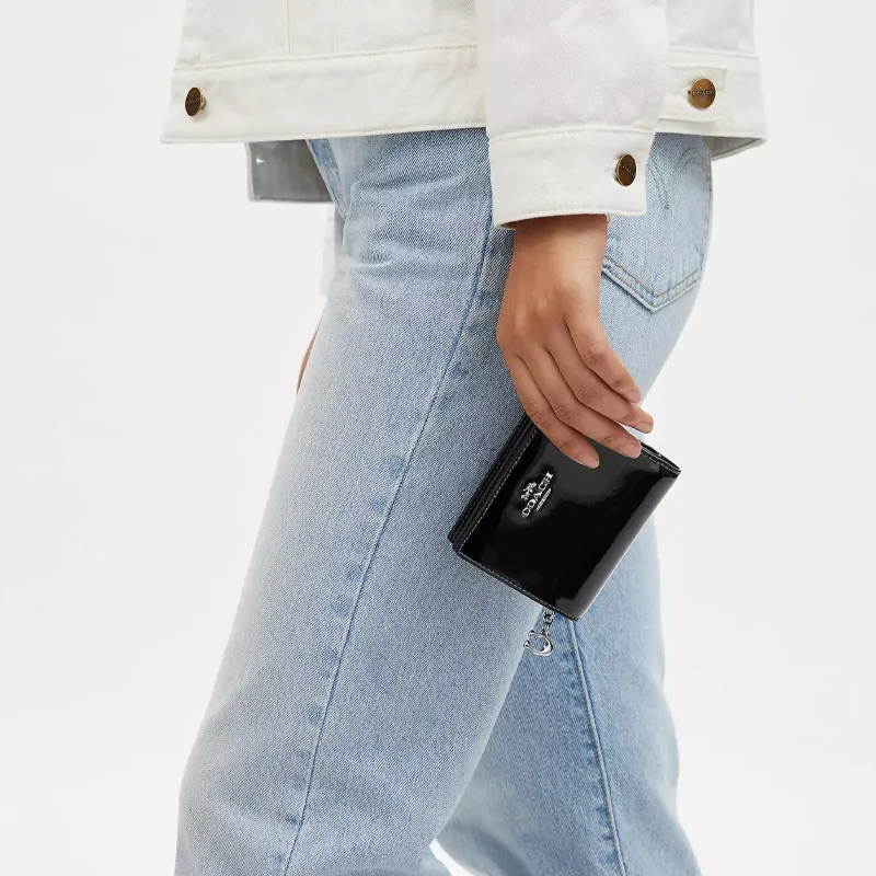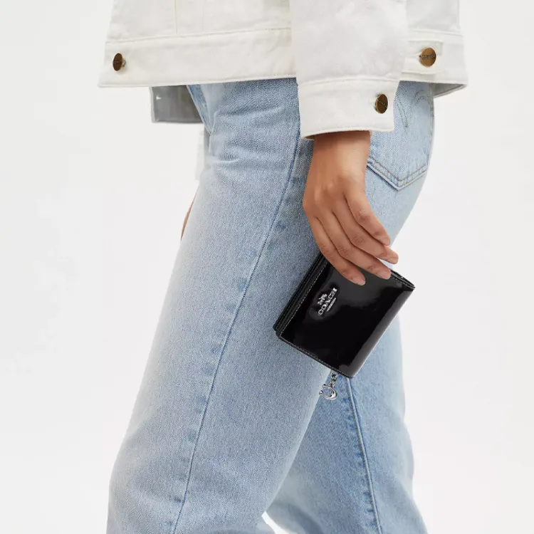 COACH Snap Wallet Лакированная кожа Монетница Кошелек Кошелек Стандартный Женские Черный