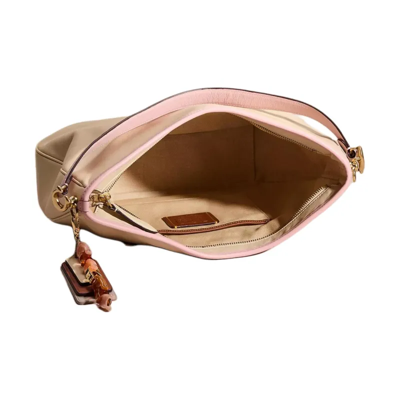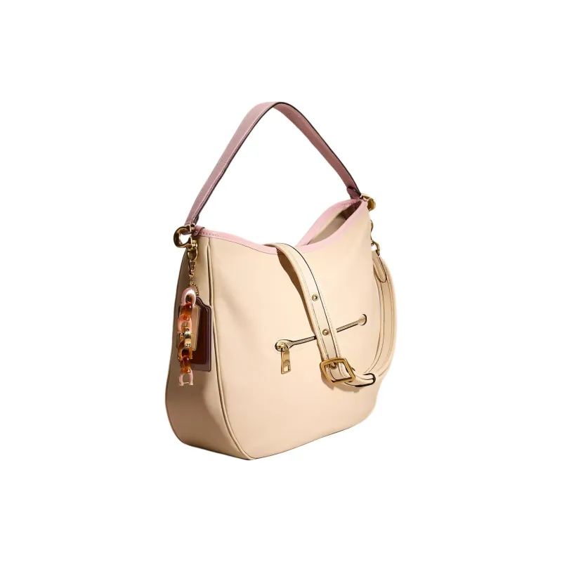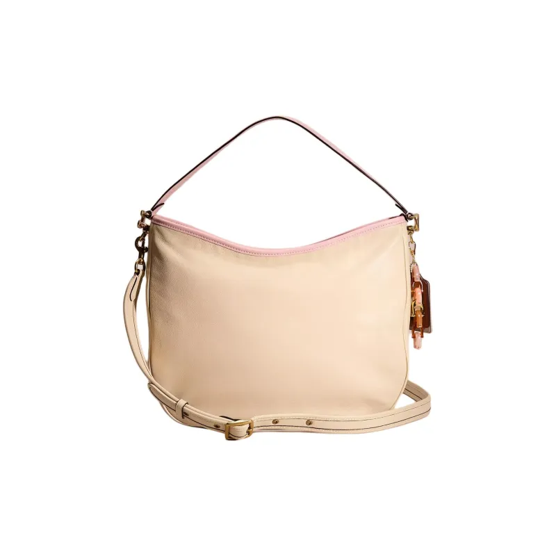 COACH Soft Tabby Кожа Сумка-хобо Сумка Сумка через плечо Сумка через плечо Большая Женская Латунь с Инкрустацией Сливочного цвета
