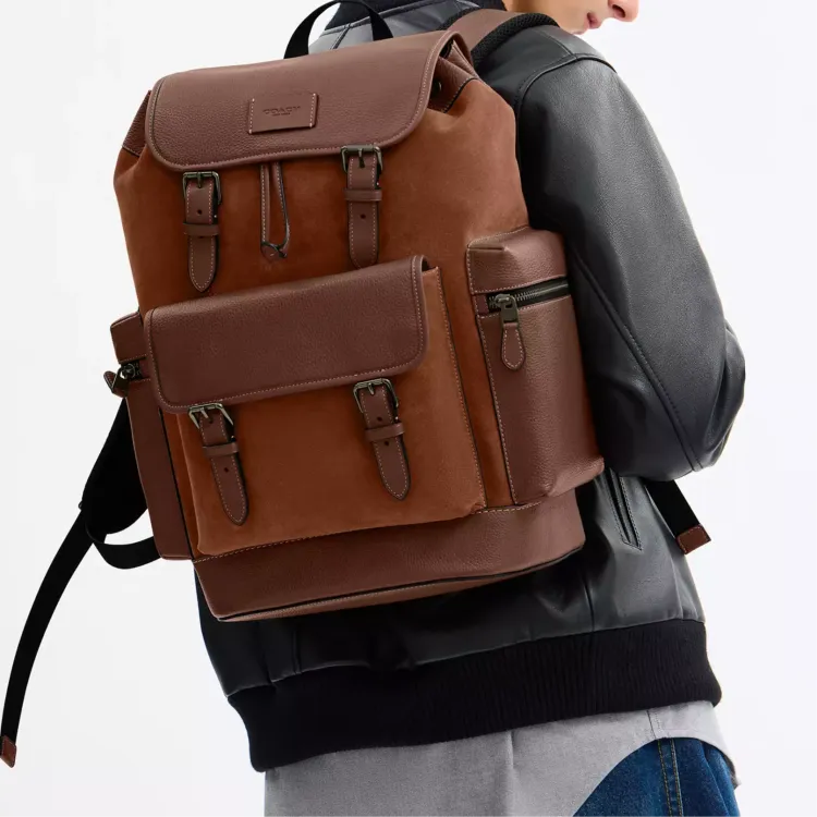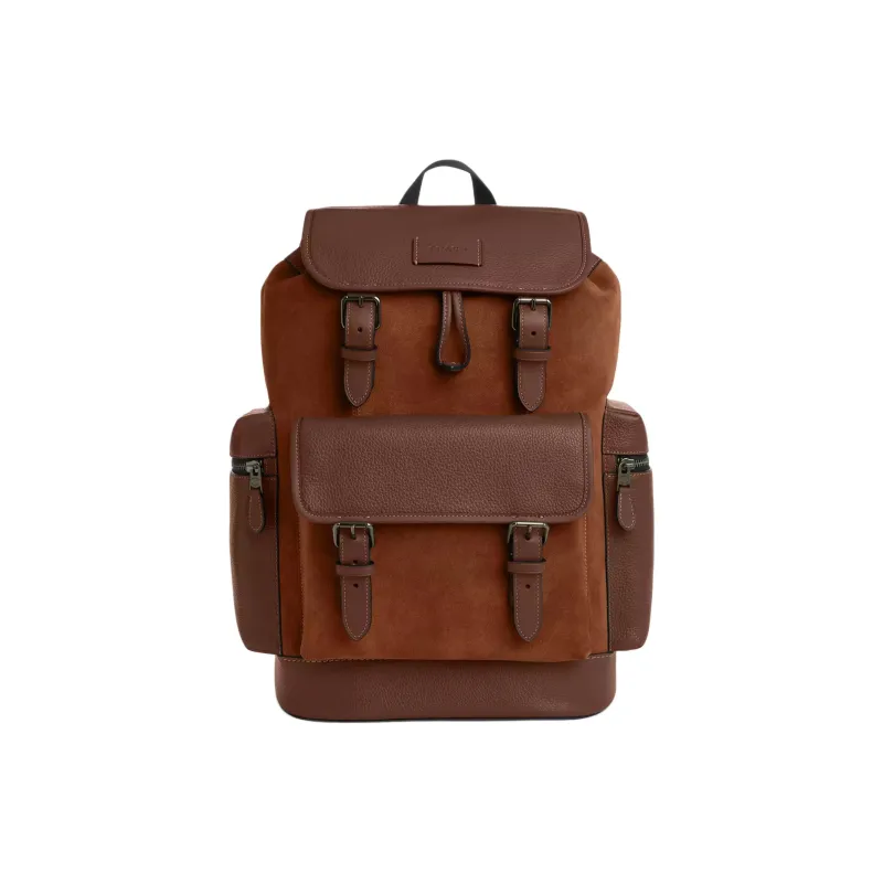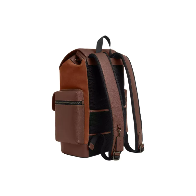 COACH Sprint Litchi Grain Leather Backpack Large Unisex Cognac