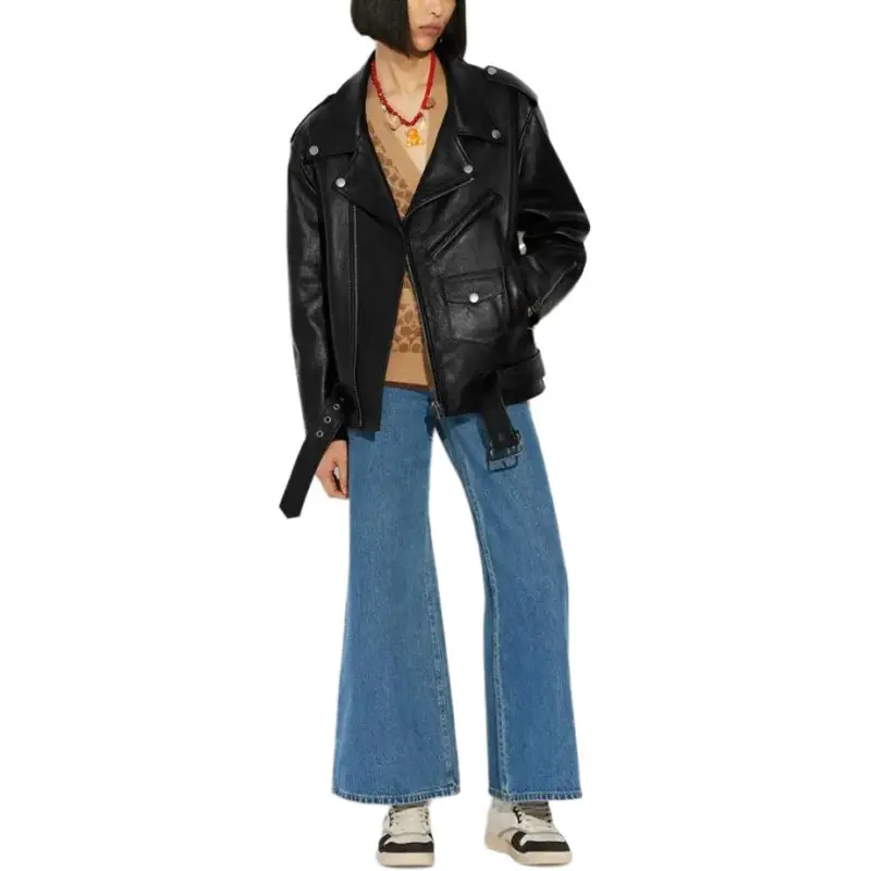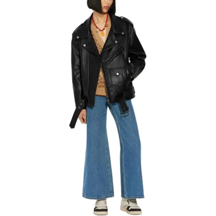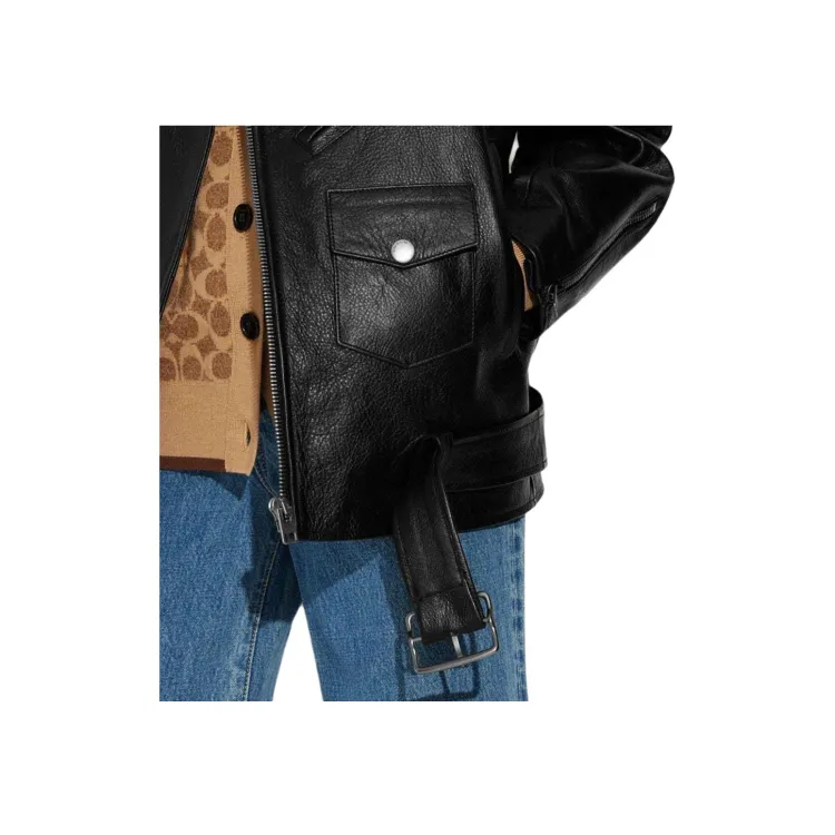 COACH SS23 Кожа Куртка Женская Черная