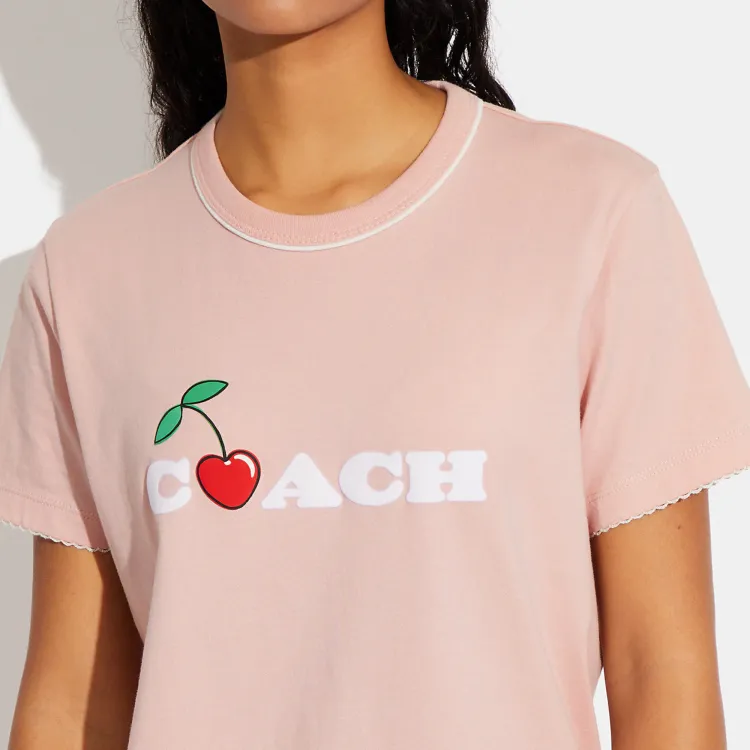 COACH SS23 Стандартная T-рубашка Женская Розовая