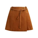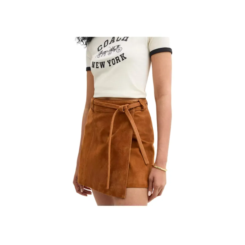 COACH SS25 Кожаные короткие юбки Женские Тепло-коричневый