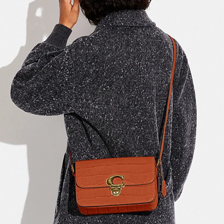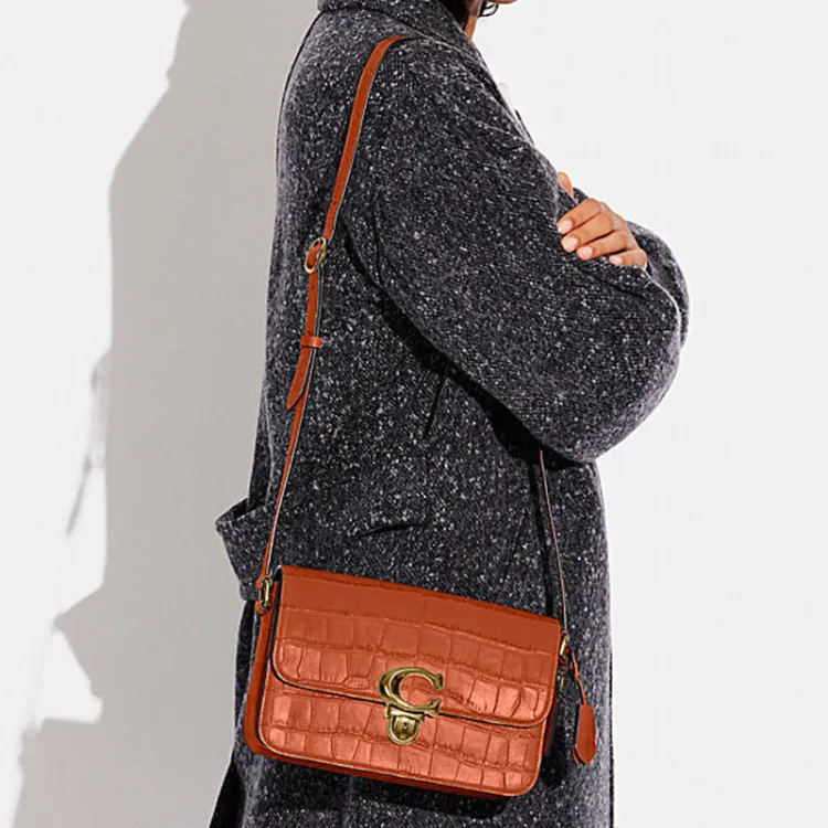 COACH Studio Кожа Маленькая Квадратная Сумка Camera Сумка Сумка через плечо Средняя Женская Апельсин