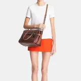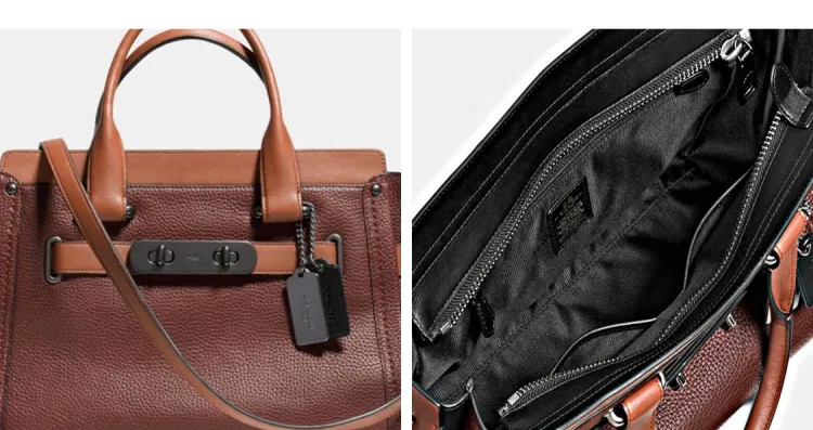 COACH Swagger Личиевая текстура Кожа Коровья кожа Сумка через плечо Сумка Большая Женская Шоколадно-коричневый и Многоцветный