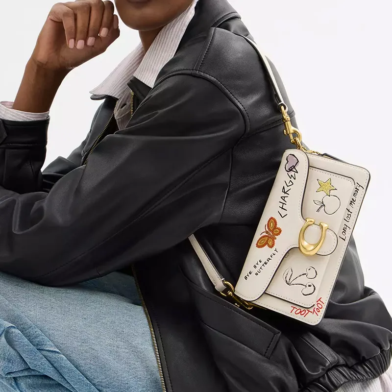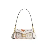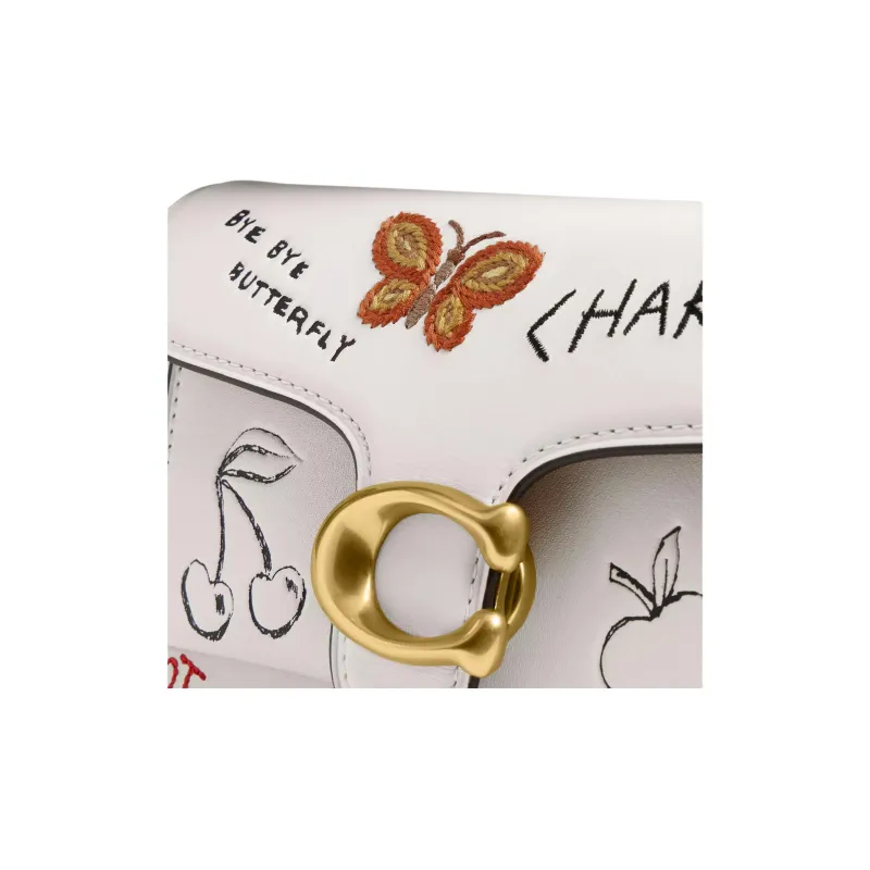 COACH Tabby Перчаточная дубленая кожа Сумка на плечо Маленькая Женская Латунь и Меловый разноцветный