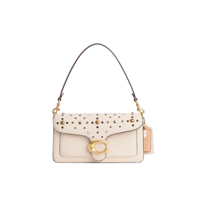 COACH Tabby Pebble Кожа Портативная Сумка через плечо Сумка на плечо Средняя Унисекс Мел Белый