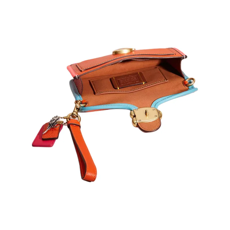 COACH Tabby Полированная Галька Кожа Ручная Сумка через плечо Маленькая Женская Латунь и Солнечный Оранжевый