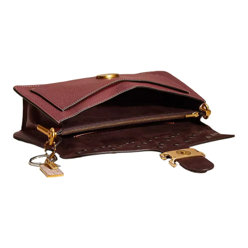 COACH Tabby Полированная кожа с галькой сумка через плечо портативная сумка на плечо средняя сумка на плечо женский латунь и бордовый