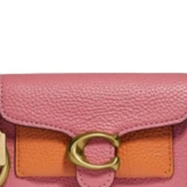 COACH Tabby Полированный Галька Кожа Кошелек для монет Мини Женский Розовый